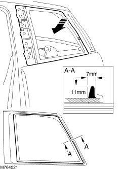^ Lightly press the rear quarter window glass into the rear quarter window glass aperture to seat the sealant.