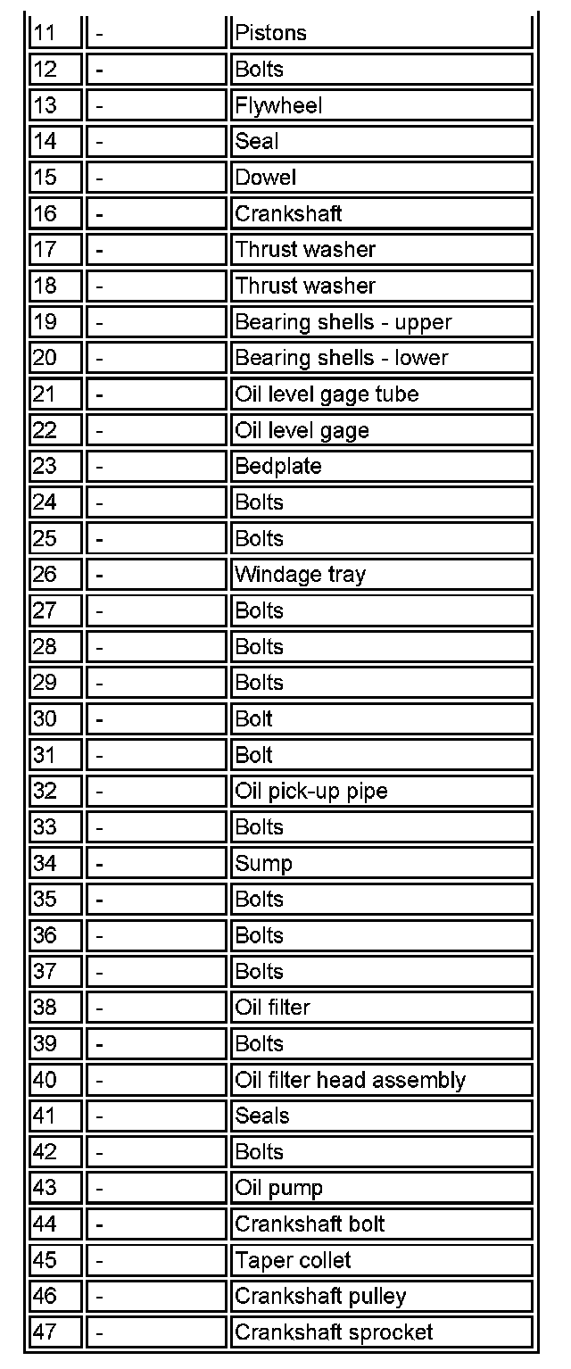 CRANKSHAFT AND SUMP COMPONENTS