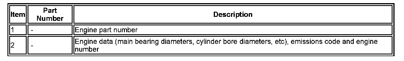 Engine data is marked at three locations, two on the cylinder block (shown) and one on the engine front cover, which consists a label displaying the engine number. Component diameters are represented by alphabetical and numerical codes, keys to the codes are in the Service Repair Procedures.