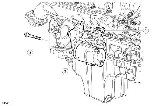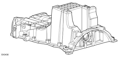 The aluminum alloy structural sump is bolted to the bedplate. A windage tray attached to the underside of the bedplate isolates the oil pan from the disturbed air produced by the rotation of the crankshaft, to prevent oil aeration and improve oil drainage. A rubber plug at the rear of the structural sump seals the port that provides access to the torque converter securing bolts. The engine oil drain plug is located at the front right corner of the oil pan.
