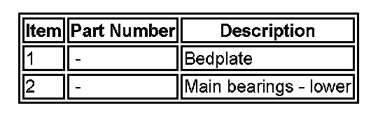The bedplate is a structural casting bolted to the bottom of the cylinder block to retain the crankshaft. The use of a bedplate further improves rigidity. Iron inserts, cast into the main bearing supports of the bedplate, minimize main bearing clearance changes due to heat expansion.