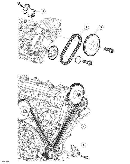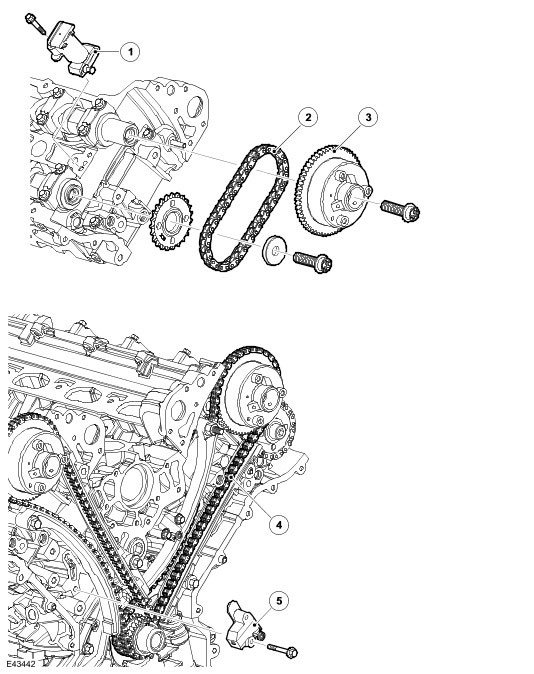 A key locates the two drive sprockets on the crankshaft. The crankshaft's torsional vibration damper retains the sprockets in position. The intake and exhaust camshaft sprockets are non-interference, non-keyed fit on their respective camshafts, the drive being transmitted by the face-to-face friction load produced by the sprocket-securing bolt.