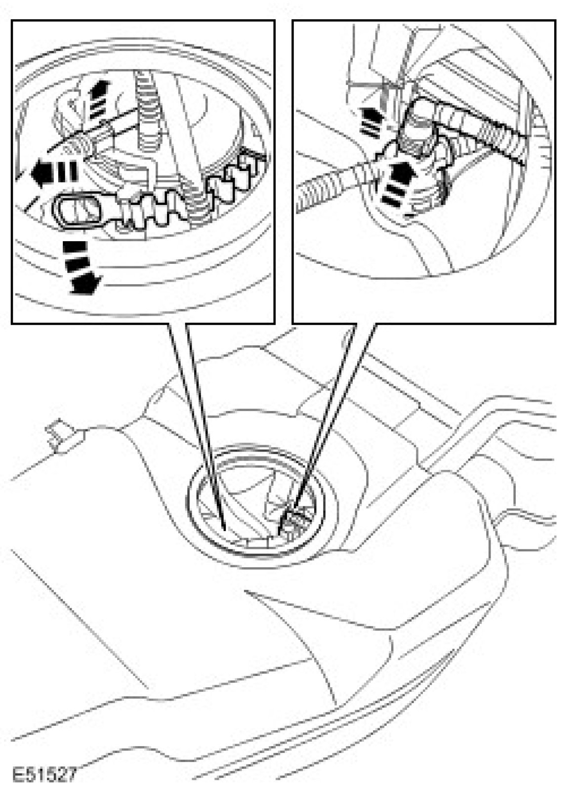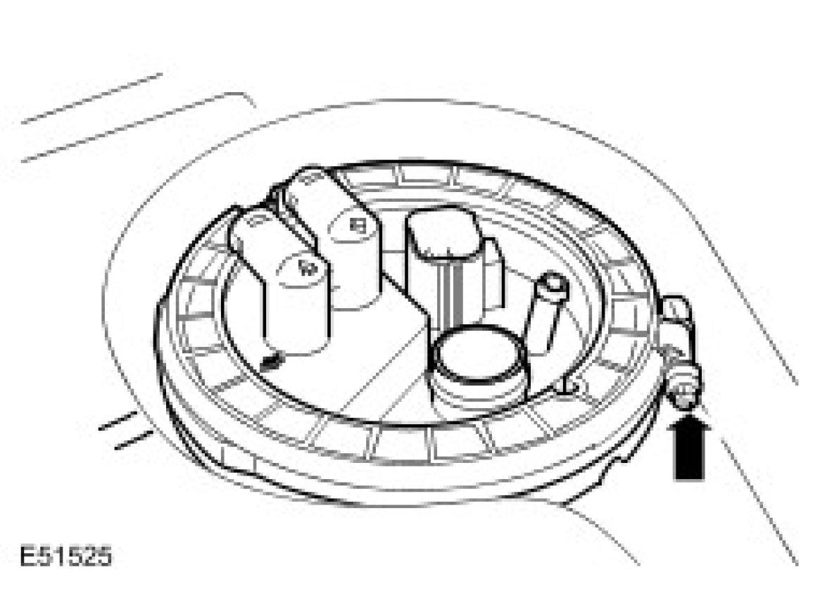 NOTE: The fuel pump module comprises of a rear fuel level sender, filter and a fuel pressure regulator. These components cannot be serviced separately.