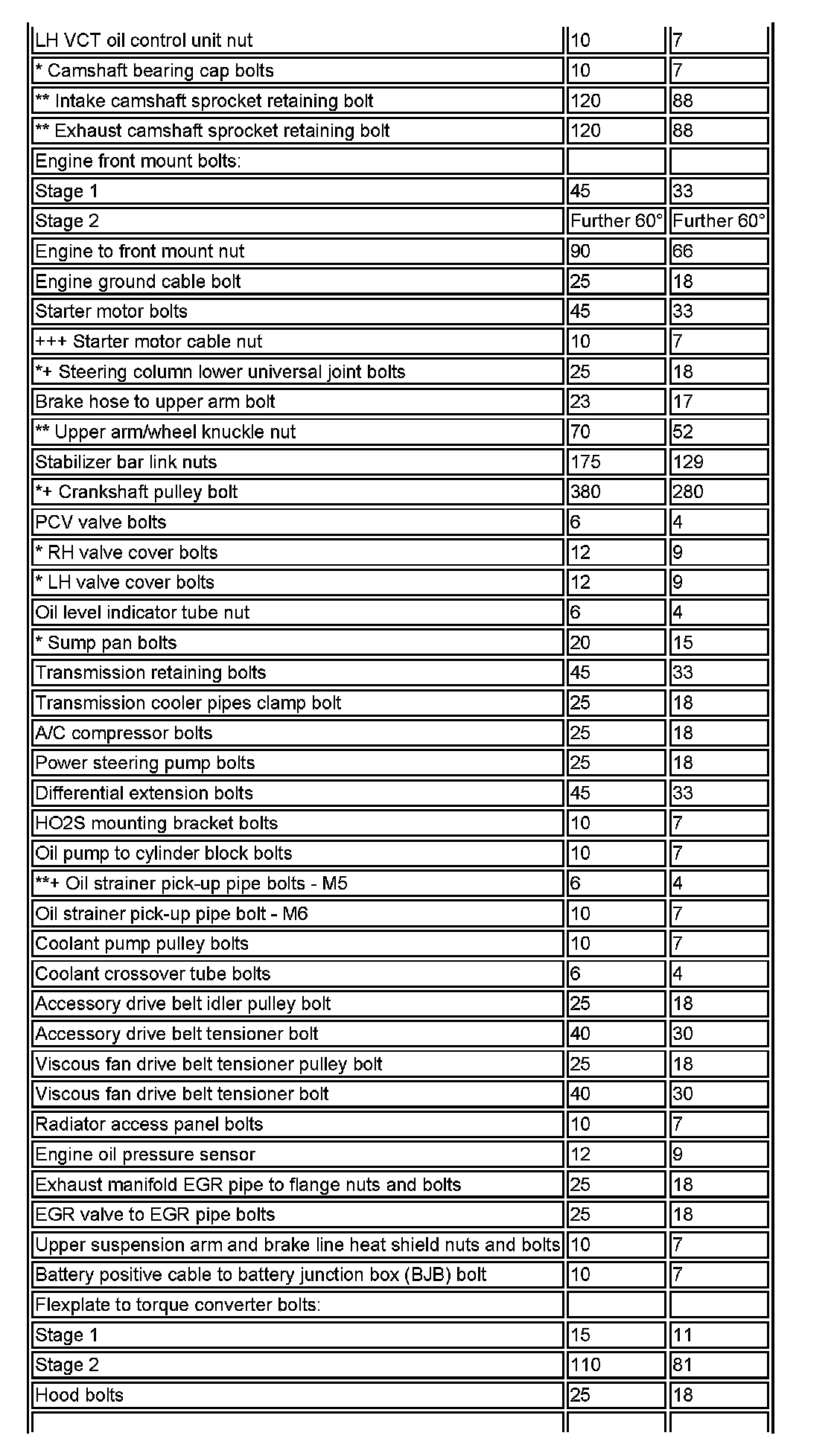 Torque Specifications