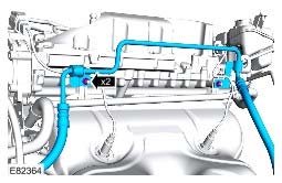 Disconnect the coolant rail hose from the coolant pump housing.