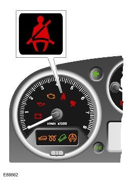 For non NAS vehicles the belt minder function can be enabled and disabled using the driver safety belt switch. The instrument cluster changes the state of the belt minder function if, within 60 seconds of first entering ignition mode II, the driver safety belt is fastened and unfastened nine times. Successful completion of the change is indicated by a single chime and the safety belt warning indicator flashing five times, at 2 Hz. The belt minder function can also be enabled and disabled using the recommended Land Rover diagnostic tool.
