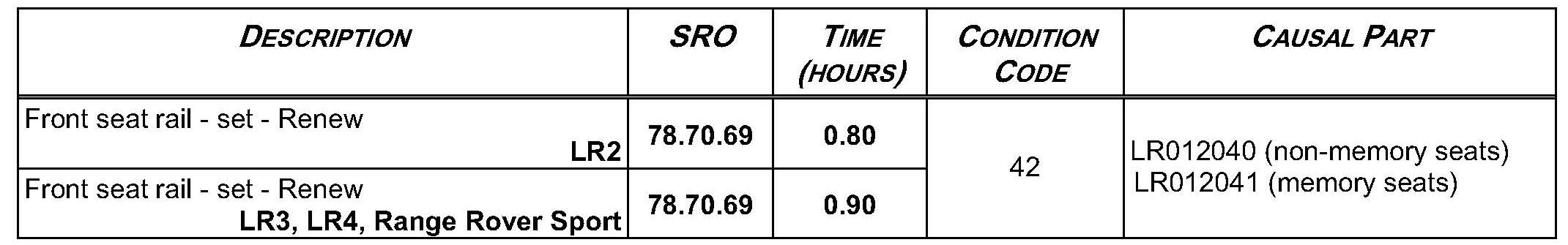 A lower level service repair is now available in the event it is necessary to replace a front seat rail; it is no longer necessary to replace the complete front seat lower frame.