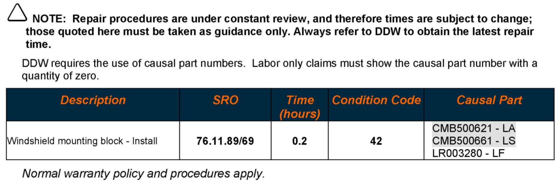 In the event a retailer needs to install the interior rear view mirror mounting boss to the windshield, the following Repair Procedure should be followed.