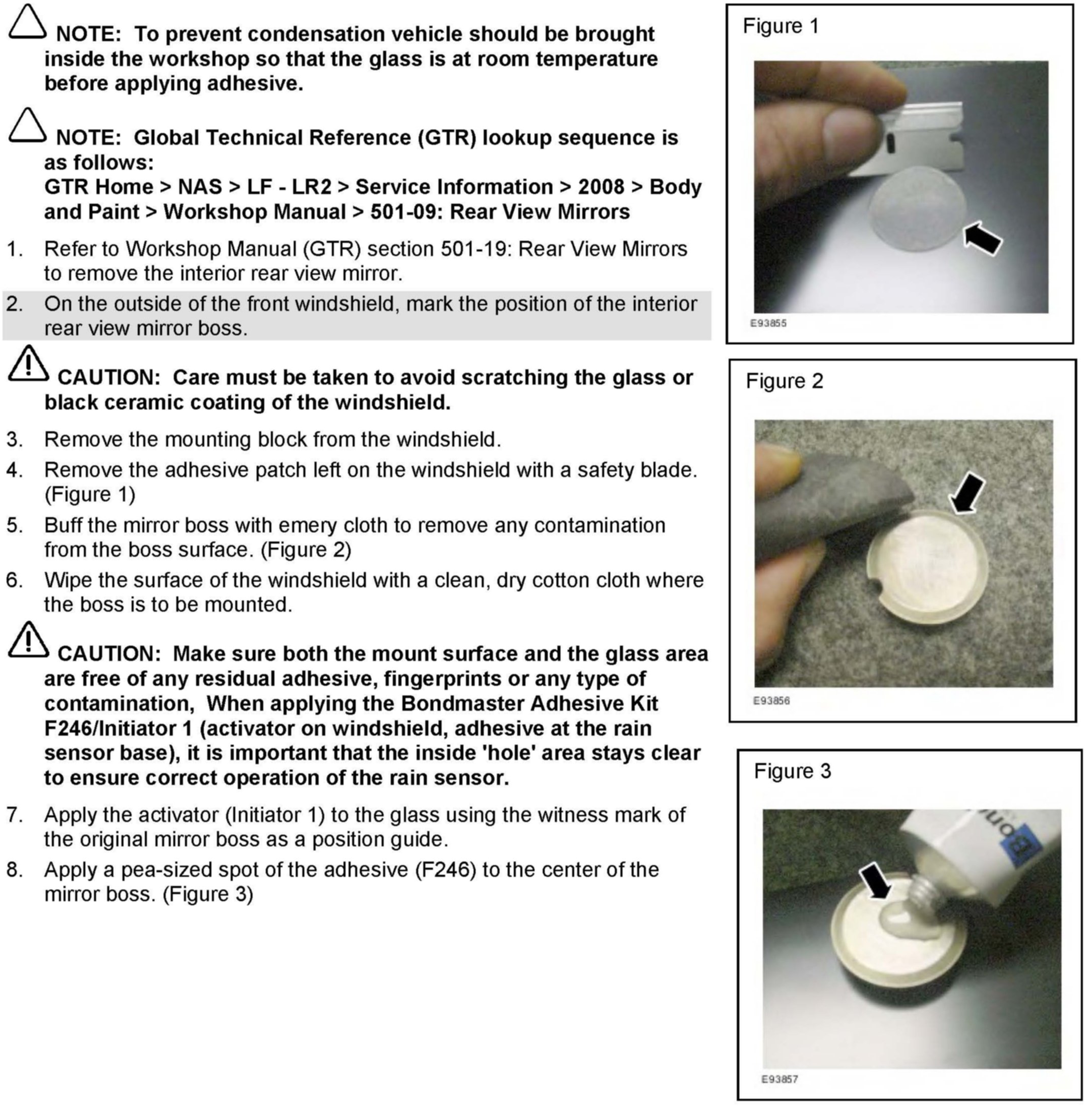 Interior Rear View Mirror Mounting Boss - Installation Procedure