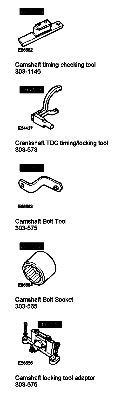 Camshaft TimingSpecial Service Tools