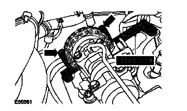 11. CAUTION: Damage to the camshaft will occur if the alignment tool is used to release the camshaft sprocket bolt.