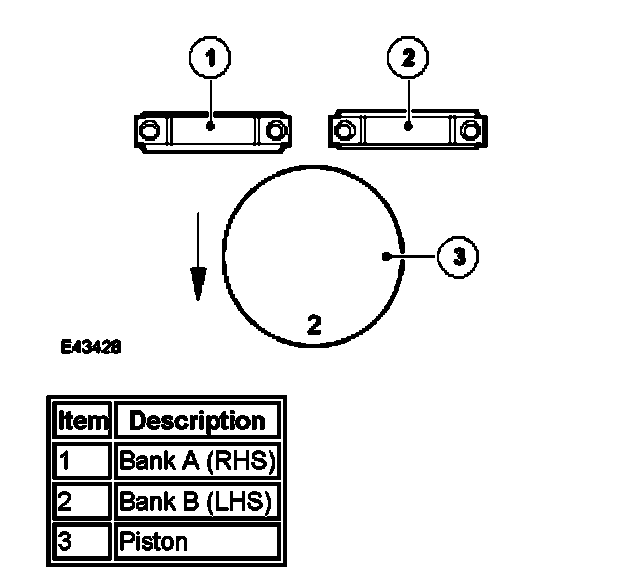 ^ Bank 'B' - piston grade number and the thin flange of the connecting rod must face the front of the engine