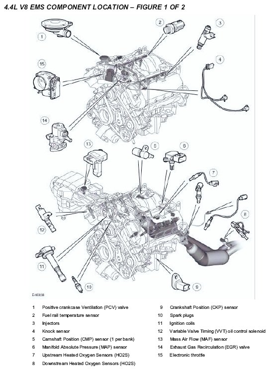 4.4L V8 EMS Component Location (1 Of 2) [Denso]: