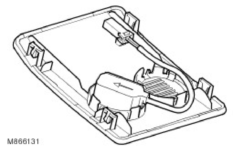 The microphone is located in the front interior lamp console. The standard, directional type microphone is connected to the Integrated Head Unit (IHU) and the navigation computer for voice recognition of the navigation system and the telephone. The microphone has an integrated noise suppression system for hands-free telephone use.