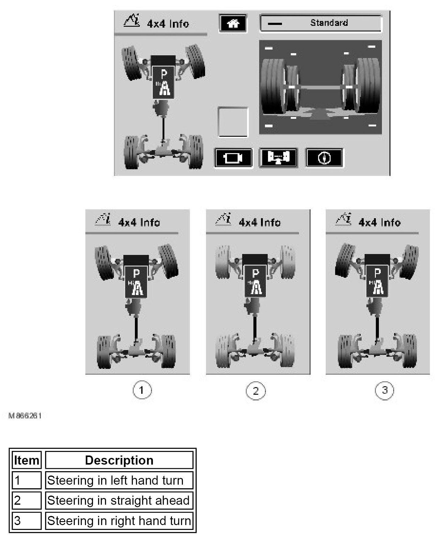 The 4X4I system uses data from other systems to obtain the displayed information. The data is received from the CAN (controller area network) and is passed to the navigation computer via the IHU and the TSD.