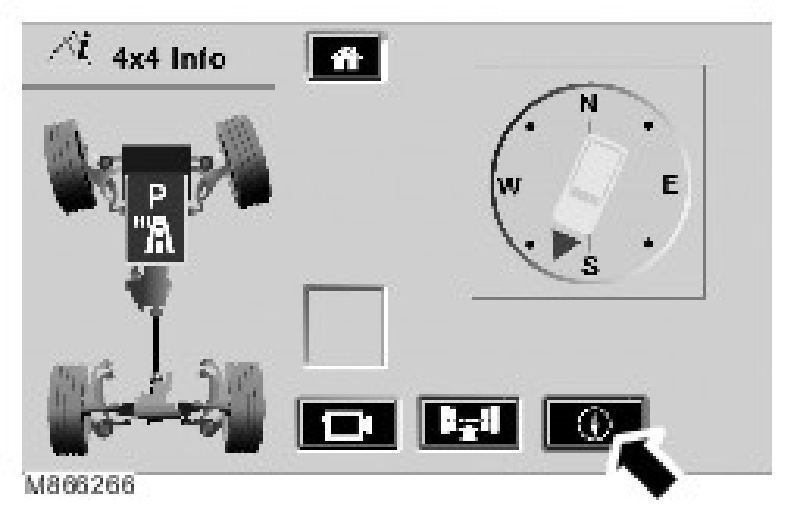 4X4I is only available on vehicles fitted with satellite navigation and provides the driver with additional vehicle status information which is displayed on the TSD. The information provides the driver with functional information relating to the vehicle powertrain and chassis and is of most benefit when driving off-road.