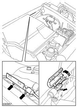 6. Disconnect the hood release cable from the connecting box.