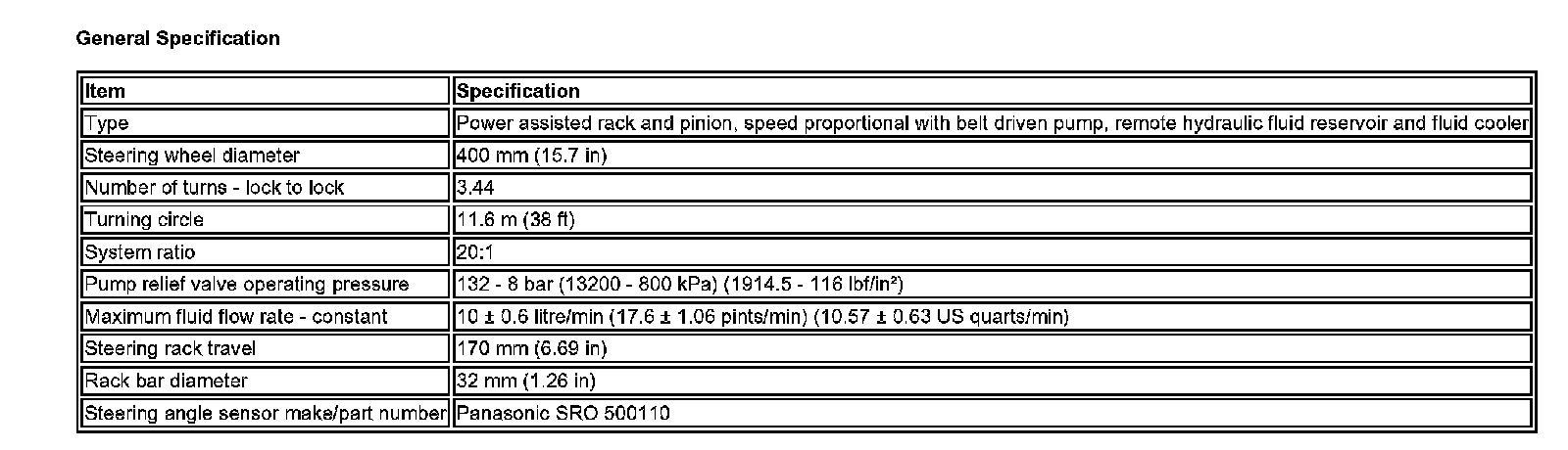Pump Relief Valve Operating Pressure 114 ±4 bar (11400 ± 400 kPa/1653 ± 58 psi)