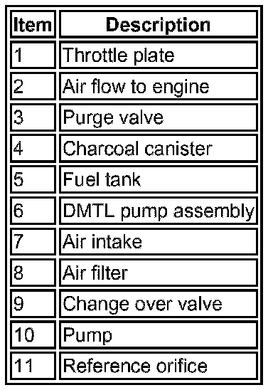 The DMTL system comprises the previously described components of the EVAP system with the following additional components; a DMTL pump and a DMTL filter.