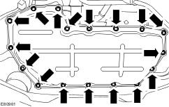 ^ Remove the crankshaft main bearing carrier retaining bolts in the indicated sequence.