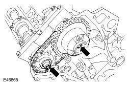 19. Remove the RH secondary timing chain tensioner and the secondary timing chain.