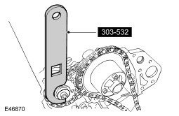 9. CAUTION: Using the special tool, apply force to the tool in a counter-clockwise direction, to tension the primary timing chain on its drive side.