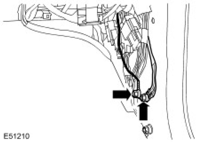 14. Install the instrument panel carrier to bulkhead Torx bolt and tighten to 25 Nm (18 lb.ft).