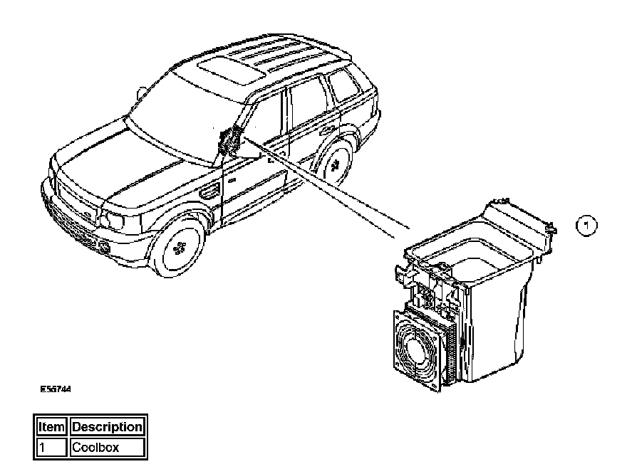 Operation of the thermoelectric cooler is controlled by an on/off switch on the top front edge of the container. A permanent battery feed is supplied to the on/off switch from the central junction box (CJB). A light emitting diode (LED) in the on/off switch is illuminated while the cool box is selected on.