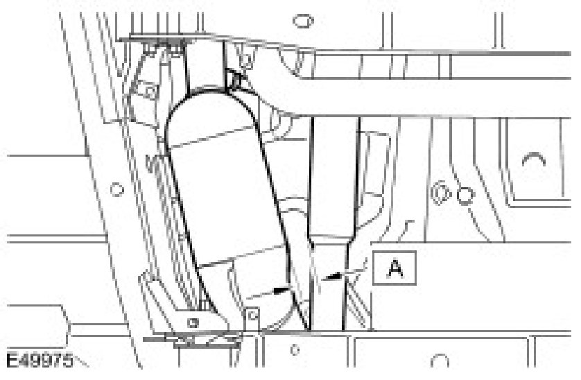 CAUTION: Make sure there is a clearance (A) of 25 mm to 30 mm between the closest points of the LH catalytic converter and the front driveshaft.