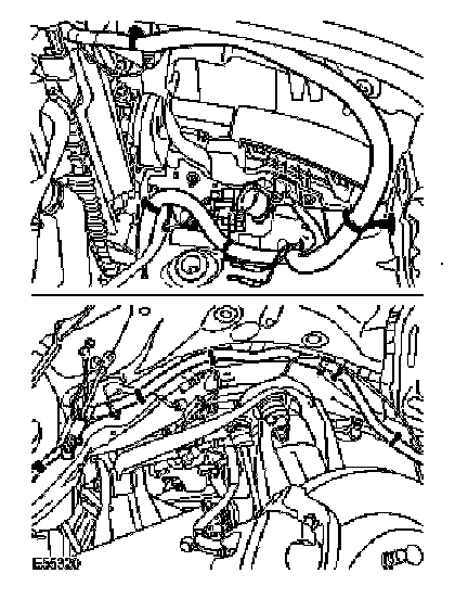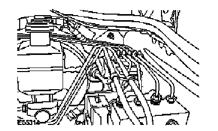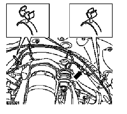 53. RH side front: Release the air suspension pipe from the wiring harness clip.