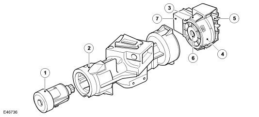On vehicles with automatic transmission. a solenoid is located on the side of the ignition switch. The solenoid, which is controlled on a single wire from the transfer box control module, prevents the key from being removed from the key barrel if the transmission selector lever is not in the PARK (P) position. The transfer box receives the transmission position status via a message transmitted from the transmission control module on the CAN bus.
