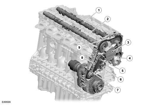 The intake camshaft is equipped with a VCT unit and also drives the vacuum pump.