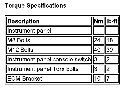 Dashboard / Instrument Panel: Specifications