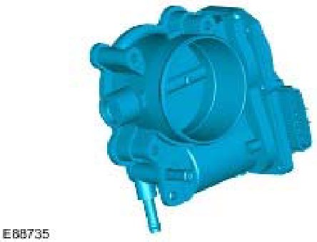 The electric throttle is located at the entrance of the intake manifold and is secured to the manifold with four Torx head bolts. The throttle also provides for the connection of the air cleaner housing outlet pipe which is secured to the throttle body with a clip.