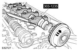 4. Using the special tools, position and secure the exhaust camshaft.