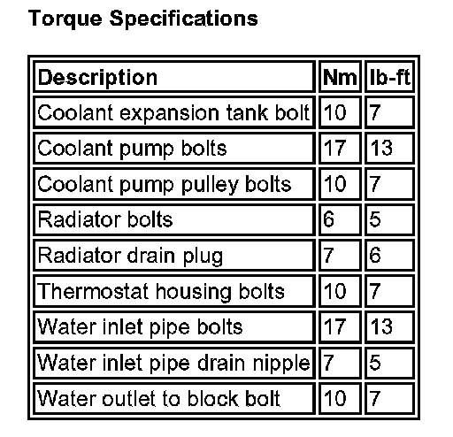 Torque Specifications