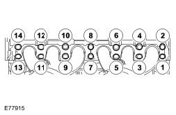 NOTE: The cylinder head tightening process is carried out once to 45 Nm, then the bolts are loosened and the final torque and angle applied.