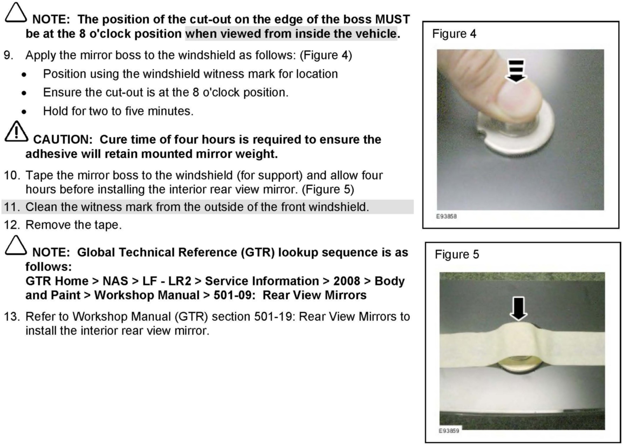 Interior Rear View Mirror Mounting Boss - Installation Procedure