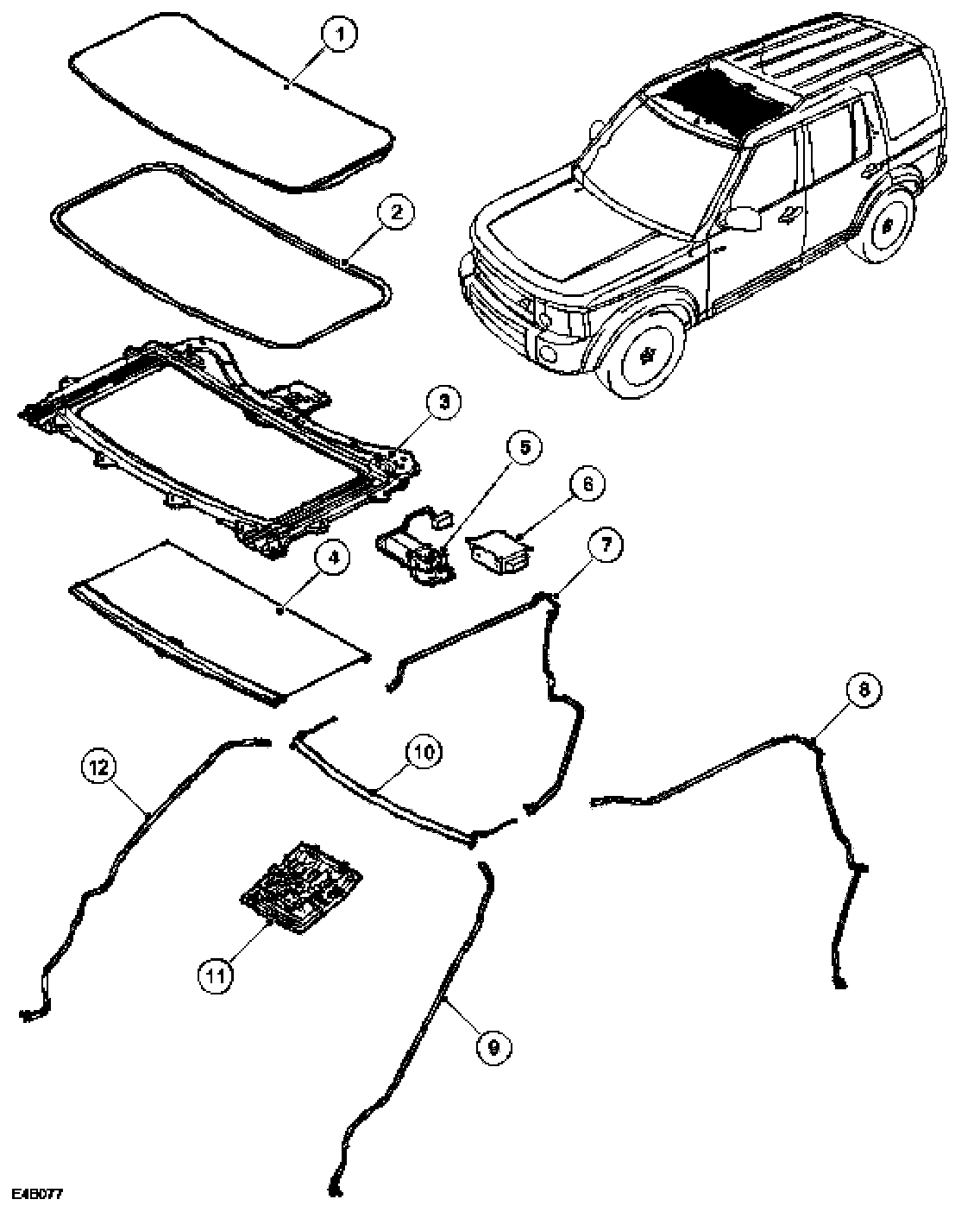 Roof Opening Panel Component Locations: