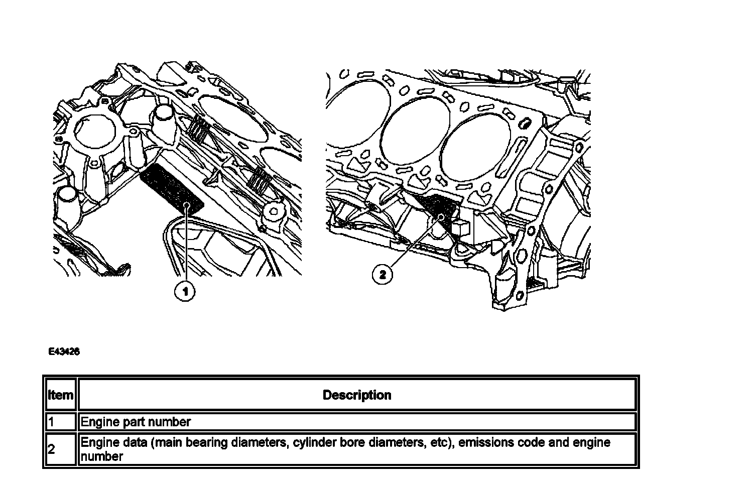 Engine data is marked at three locations, two on the cylinder block (shown) and one on the engine front cover, which consists a label displaying the engine number.