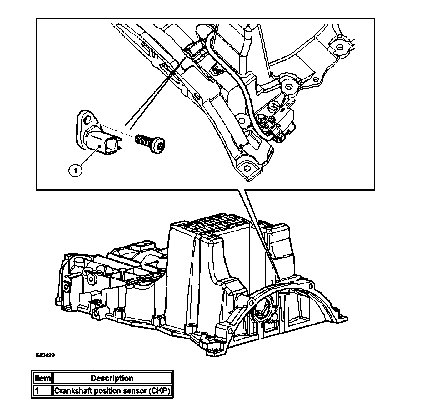 The CKP sensor is installed at the rear of the sump. It is a variable reluctance sensor that provides an input of engine crankshaft speed and position.