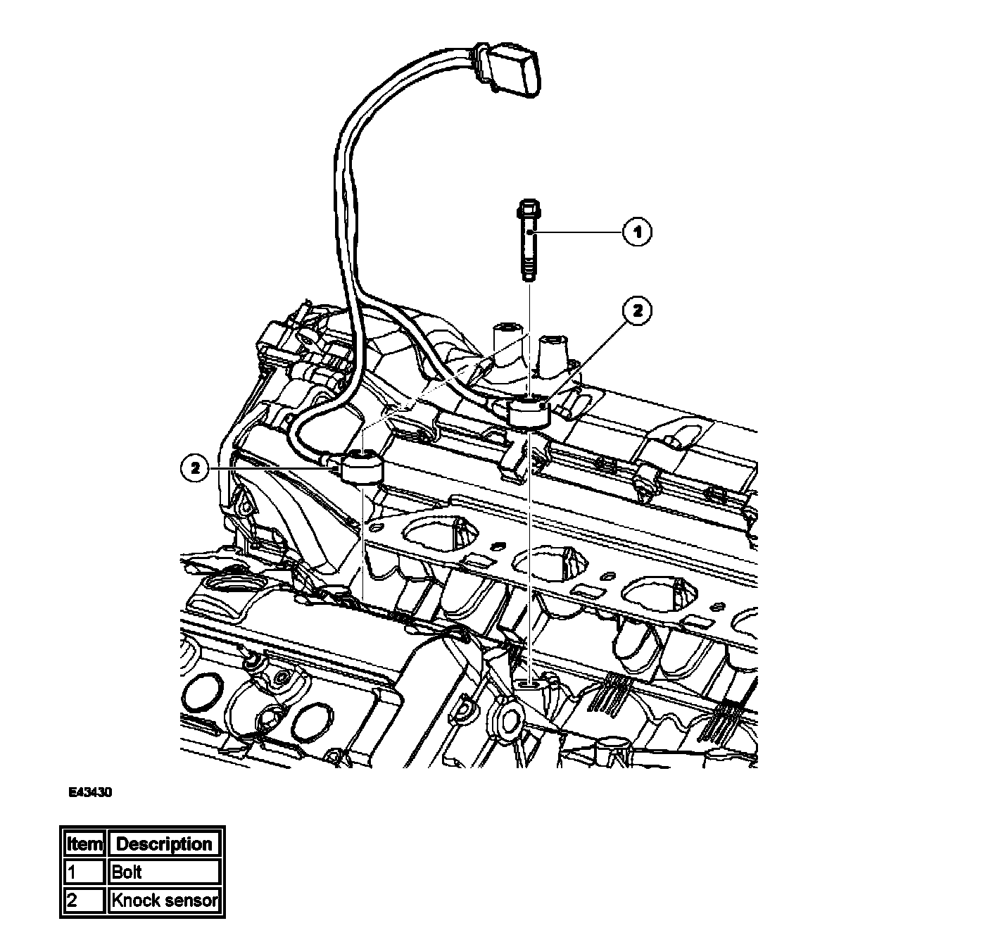 The knock sensors are installed in the cylinder block on the inboard side of each cylinder bank. They are piezo-electric sensors that provide inputs to detect and locate detonation during combustion.