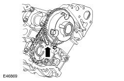 CAUTION: Using the special tool, apply force to the tool in a counter-clockwise direction, to tension the primary timing chain on its drive side