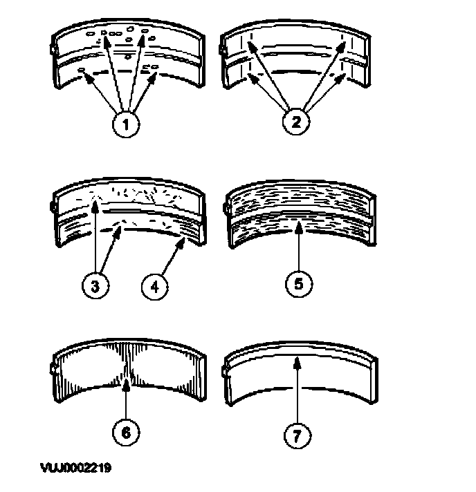 7. One edge worn - journal tapered or bearing not seated.