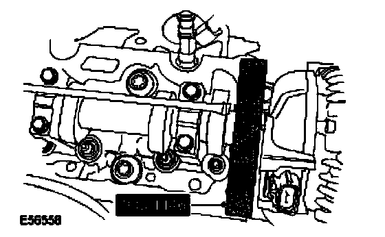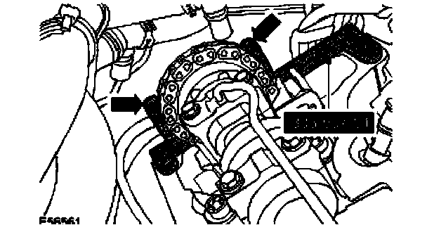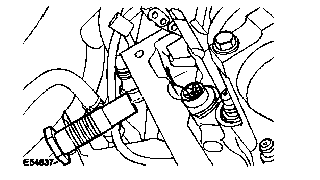 11. CAUTION: Damage to the camshaft will occur if the alignment tool is used to release the camshaft sprocket bolt.