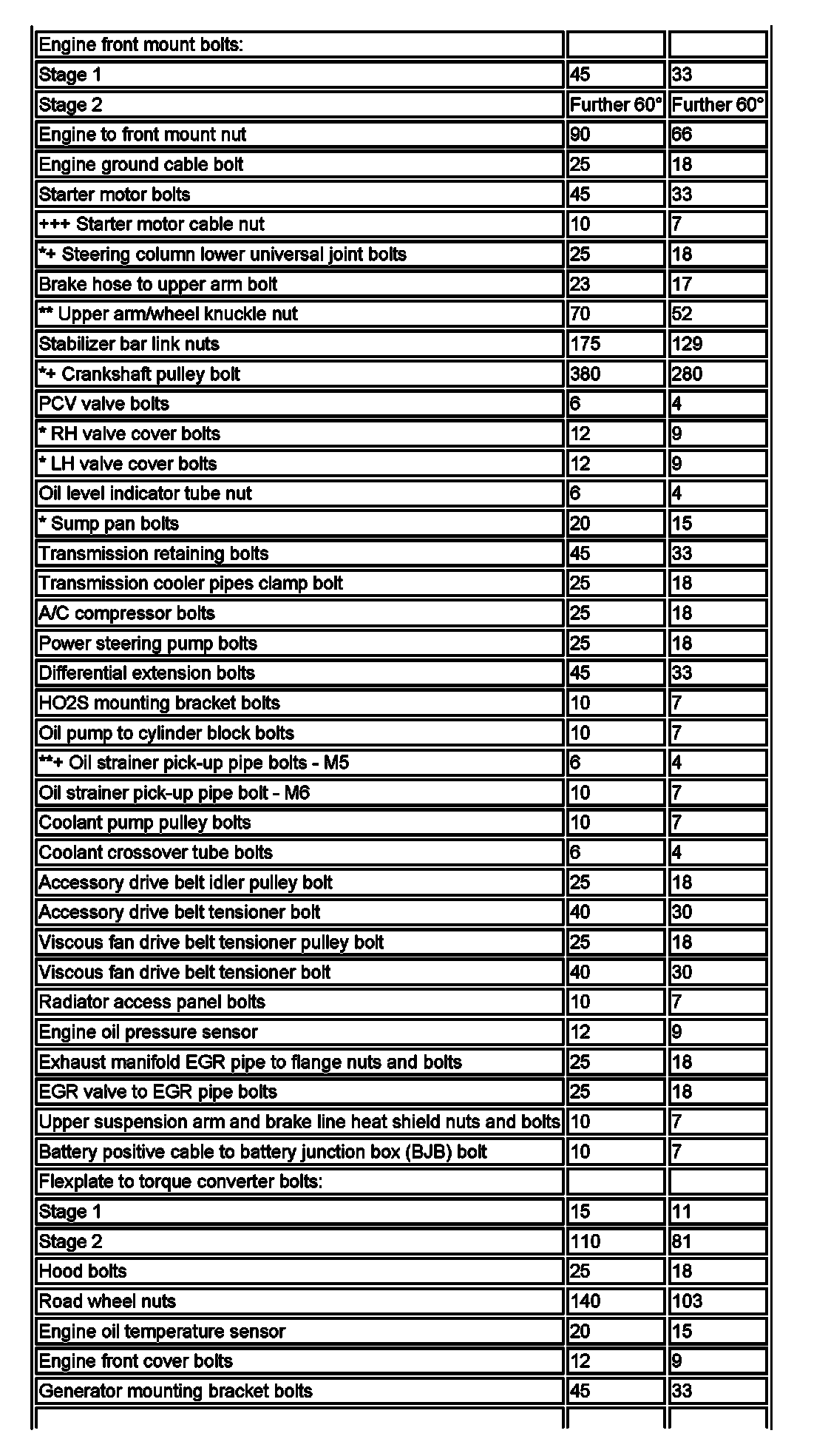 Torque Specifications
