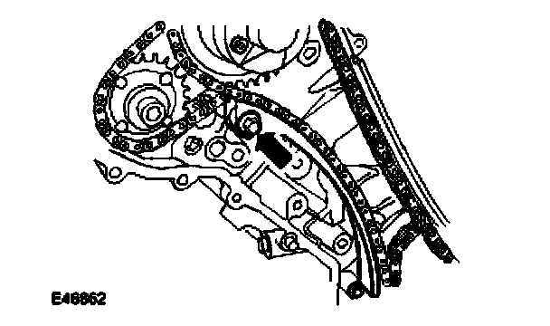 13. Remove the LH primary timing chain tensioner.