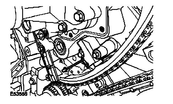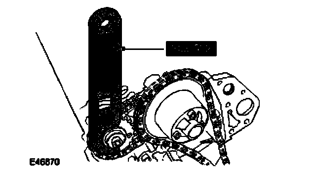 CAUTION: Using the special tool, apply force to the tool in a counter-clockwise direction, to tension the primary timing chain on its drive side.