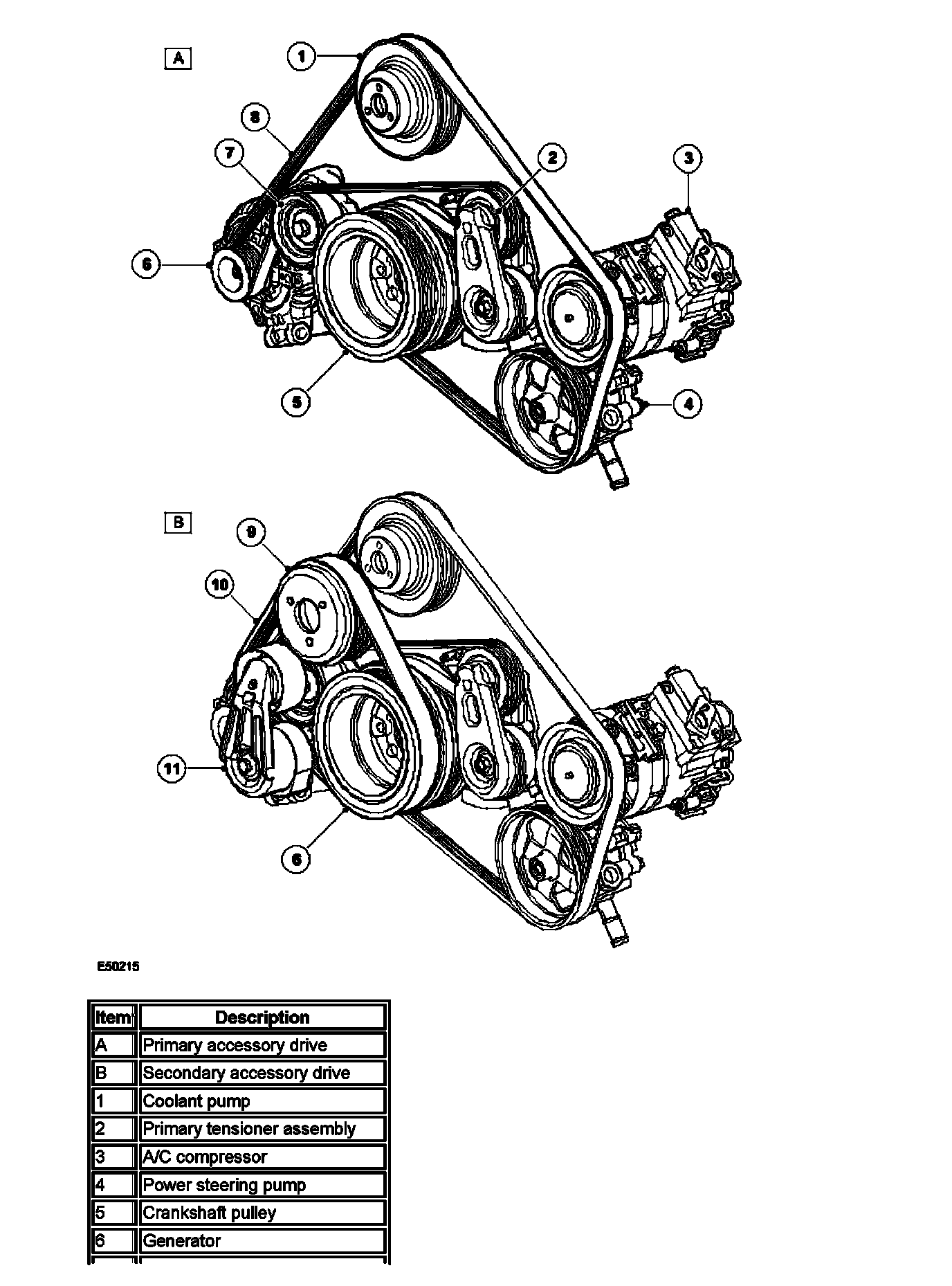 Accessory DriveA single six-ribbed belt drives all the primary engine mounted accessories and a secondary single eight-ribbed belt drives the engine driven cooling fan.
