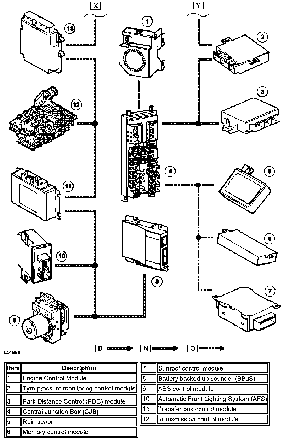 NOTE: D= HS CAN Bus N= MS CAN Bus O= LIN Bus
